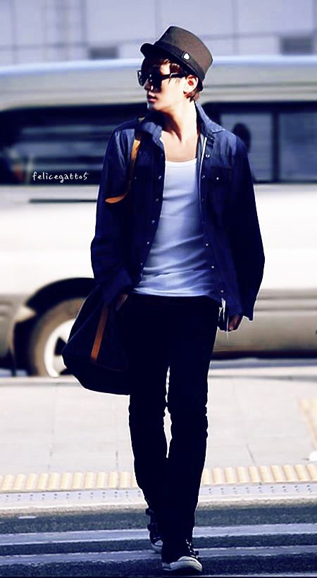Trong bức ảnh, thần tượng kì cựu Kangta đang mặc một bộ trang phục màu đen, khiến anh trở lên vô cùng nam tính. Chiếc cằm nhọn, làn da sáng vì ánh nắng cùng với kính đen khiến anh trở nên rất lôi cuốn.