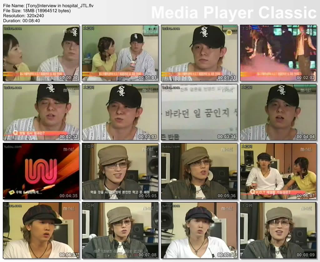 Vid này là một cuộc phỏng vấn Tony về vết thương khi quay MV without your love khiến em ấy gục xuống trong buổi diễn comeback (trong chương trình có cả Hee Jun biểu diễn và Kang Ta làm MC).Có thể nói show này là lần đầu tiên H.O.T gặp lại nhau trước mặt mọi người và cùng đứng trên 1 sân khấu (cho dù không phải là hát chung).JTL biểu diễn trước, ngay sau đó là đến Hee Jun, nhưng ngay khi kết thúc bài hát, Tony đã gục xuống và ngay lập tức được đưa vào bệnh viện trong khi Hee Jun đang hát (vid này sẽ up sau).Trong cuộc phỏng vấn Tony cũng tỏ ra rất tiếc khi không được xem Hee Jun biểu diễn.Source:tudou/H.O.T’s fanblog